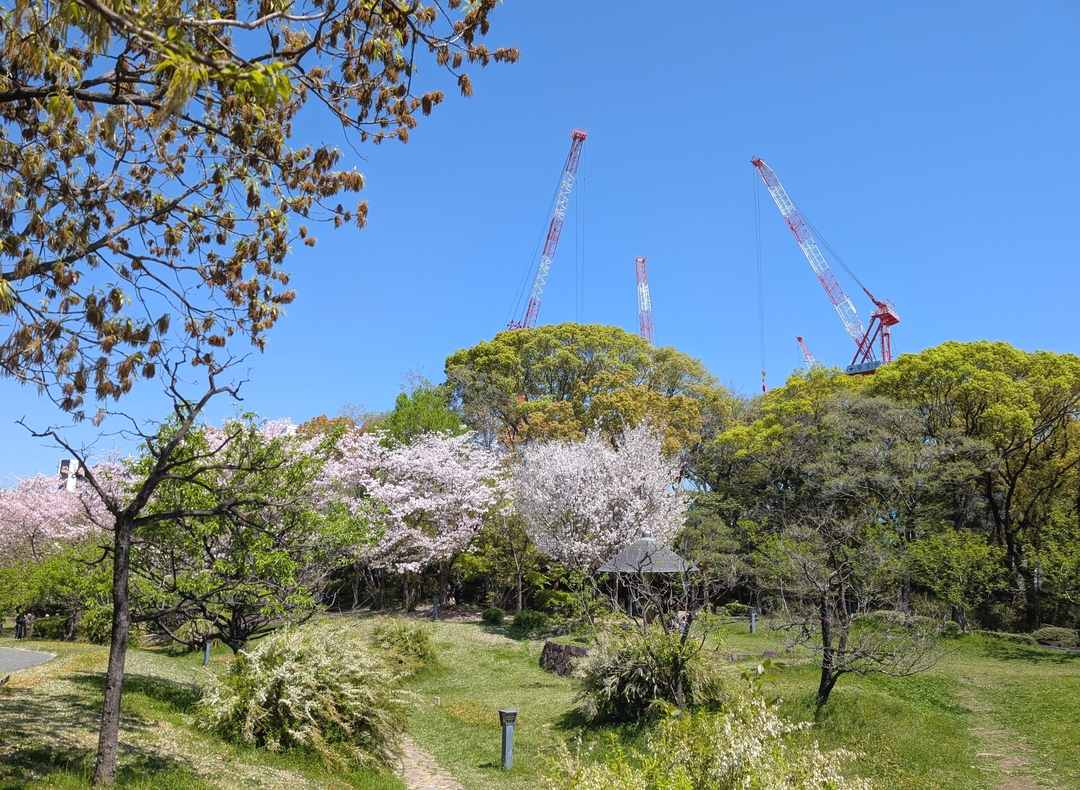 このすぐ近くにあった太閤園が閉館、跡地に創価学会の講堂建設が進んでいるようでした。